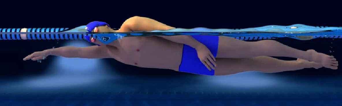 Gute Haltung im Schwimmen bedeutet, die Ausrichtung von Kopf, Hüften und Füssen beizubehalten, während der Körper gleichmässig um seine Längsachse rotiert. Diese Ausrichtung reduziert seitliche Bewegungen, die nichts als Energieverschwendung sind.